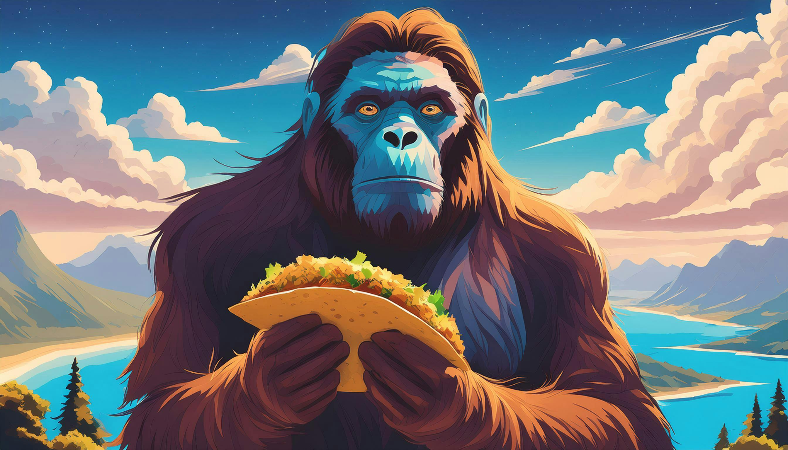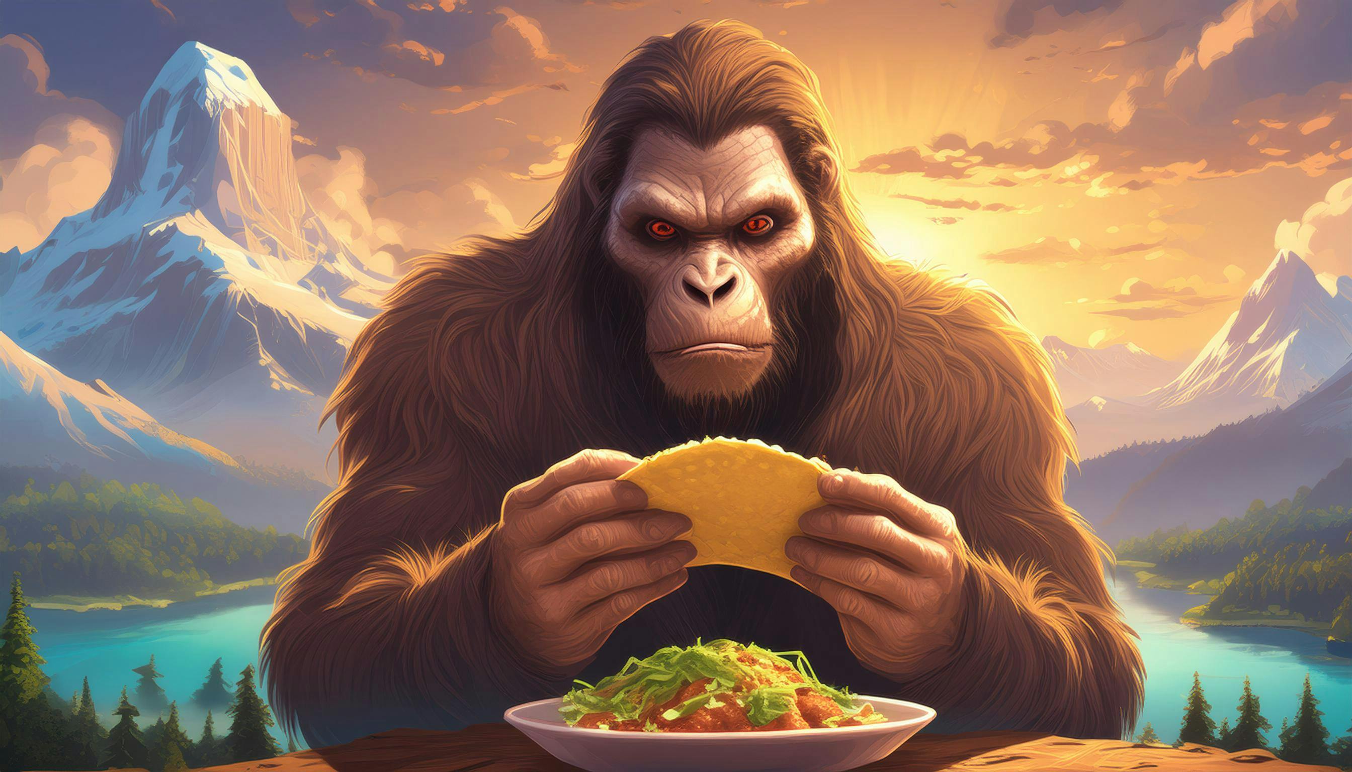 Journey into the heart of the wilderness to uncover the surprising delight of Bigfoot enjoying a taco! Witness the legendary creature take a break from hiding to savor a flavorful meal. It's a fun and unexpected tale that proves even the elusive Bigfoot has a taste for tacos! 🌮🦶🏞️